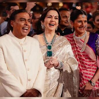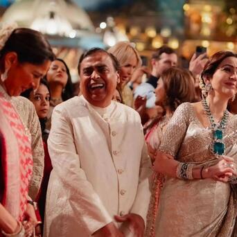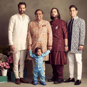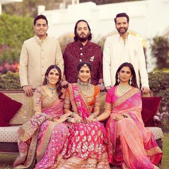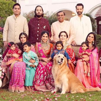 印度首富最新全家福来了!看着都毫无架子,准儿媳坐C位很受重视,首富太太不输儿媳和女儿