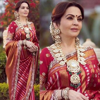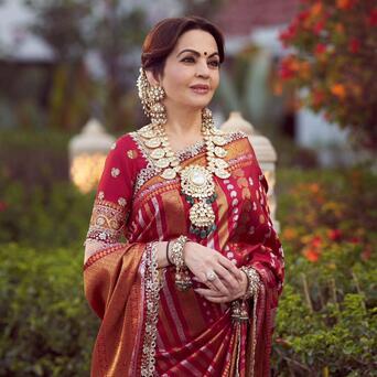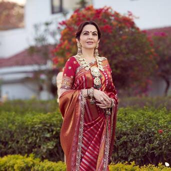 首富太太妮塔可真是贵气满满,这次又是一身华丽着装亮相,这身红色的服饰,首富太太还特意绣上了小儿子和准儿媳的名字首字母,寄托着对儿子祝福。