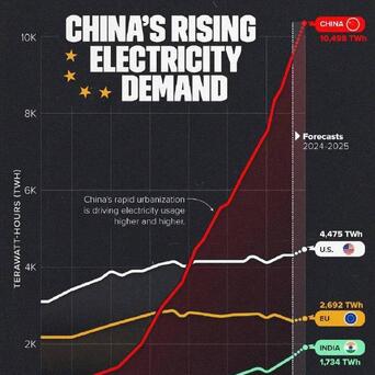 因为工业体系是能源消耗大头,发电量大的国家不一定有强大的工业,但有强大工业的国家发电量也一定会很大。